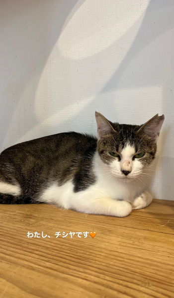 特徴(性格など) | マイペースな女の子チシヤちゃんです! 写真で見るとキリッとした表情ですが、実際はとても人懐っこく甘えん坊です! お尻トントンされるのが大好きで、触られるとゴロンゴロンして喜びます。 ちょっと小柄なキジ白の女の子。手足の模様が特徴的でとっても可愛いです! 会って触れ合ってみると印象が変わる子かな?と思います。 ぜひ可愛いチシヤちゃんの会いにいらしてください! |