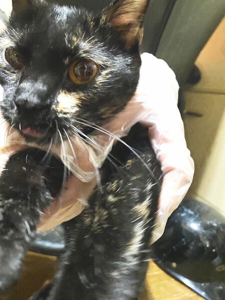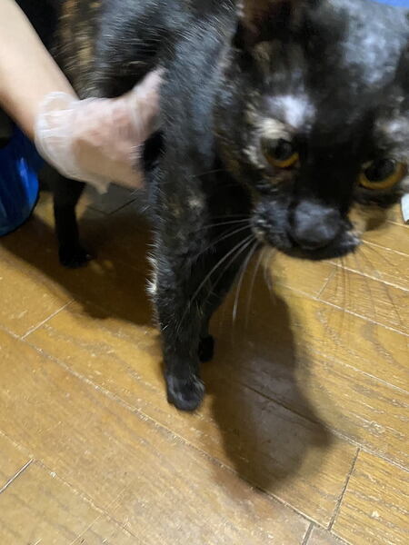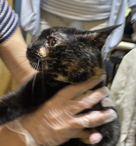 | 特徴(性格など) | 名前:ナブラちゃん 黒多めのサビ メス 2歳くらい とても人懐っこくて性格が優しい子です。 健康状態:良好。不妊手術済み。 ウィルスチェック済み(エイズ及び白血病共にマイナス)。 3種ワクチン済み。 ノミ・ダニ駆除済み。 爪切り済み。 |