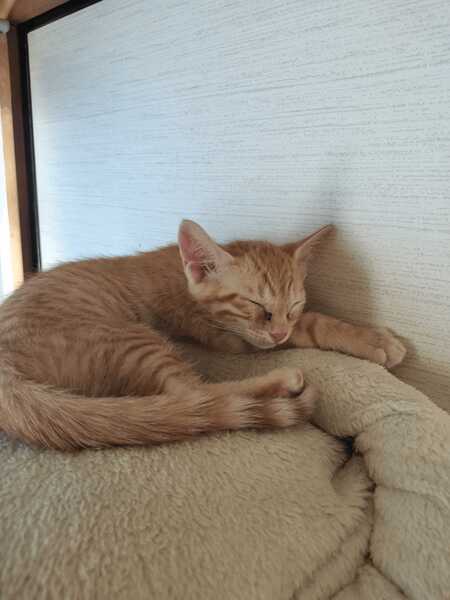 | 特徴(性格など) | 元気いっぱいな茶トラの男の子です。わんぱくで、甘えん坊です。 | ||