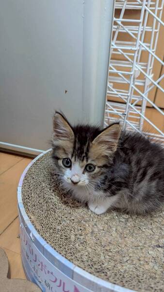 | 特徴(性格など) | 4匹の兄妹で一緒に保護しました。 ケージではおとなしく固まって寝てますが、ケージから出してあげると4匹で走り回ったり戯れたりとても楽しそうに遊んでます。 譲渡先の希望:兄妹一緒に2匹で迎えて下さる方優先です。または先住猫ちゃんがいるか、お留守番短い方にお願いします |