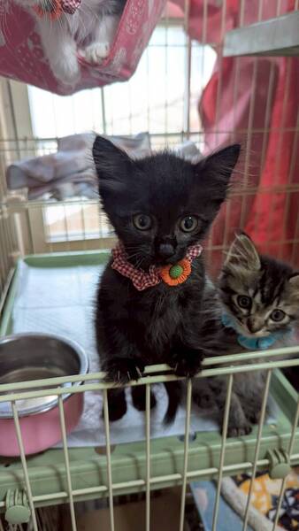 | 特徴(性格など) | 4匹の兄妹で一緒に保護しました。 ケージではおとなしく固まって寝てますが、ケージから出してあげると4匹で走り回ったり戯れたりとても楽しそうに遊んでます。 譲渡先の希望:兄妹一緒に2匹で迎えて下さる方優先です。または先住猫ちゃんがいるか、お留守番短い方にお願いします。 |
