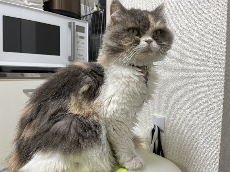 | 特徴(性格など) | 白、ベージュ、茶色の3色で、おとなしいですが、外に出たがる子なので、ドアや窓を開けっぱなしにしないようにしてください。 | ||