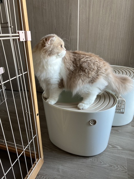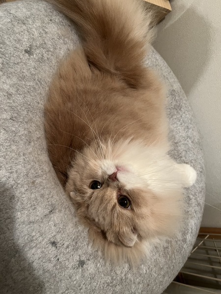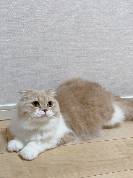 | 特徴(性格など) | 種類:スコティッシュフォールド カラー:クリーム&ホワイト 年齢:4歳 基本的にあまり鳴かず、かなりおっとりしています^^ ただ他の猫とじゃれあったりは好きで、おもちゃでも遊んでくれます! 甘えん坊とまでは行きませんが、たまにスリスリ、ぺろぺろしてくれそれがめちゃくちゃかわいいです!!! 爪切りや足裏バリカンは苦手ですが、慣れてチュールを構えると大人しくなり、抱っこ等もされるがままです笑 ジャンプ力があまり無いので、高い場所には椅子等を経由して登ります。 乗って欲しくない場所への対策は比較的簡単かなと思います! 短めの足とタヌキのような尻尾がチャームポイントです♪ |