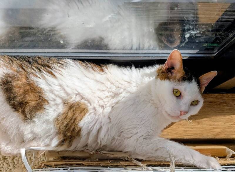 | 特徴(性格など) | ちょっと怖がりです。遊んで欲しくて他の猫について回ったりちょっかいかけたりしています。 でもおやつを他の猫に譲る優しい子です。 鍵しっぽです。 |
