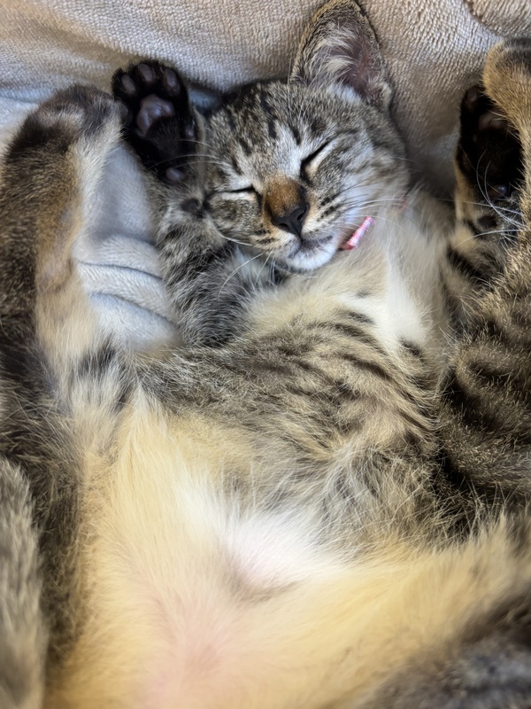 | 特徴(性格など) | キジトラのフェリックスちゃん 抱っこするとずっとゴロゴロいってる甘えん坊の女の子です。 人馴れ頑張り中です! |