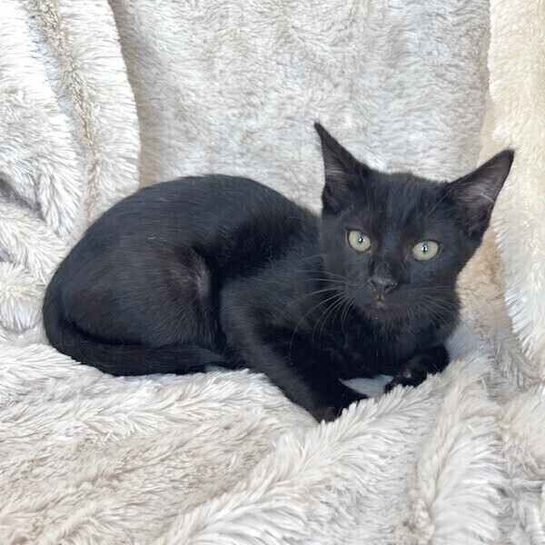 | 特徴(性格など) | 【仮名】黒平くん 【性格】真っ黒ツヤツヤの黒平くん♪ よく見るとうっすらトラ模様もあるんです♪ しなやかなクロヒョウみたいなにゃんこ! 保護したてでまだビビりですがナデナデするとゴロゴロいうし 結構ちょろい感じですね((笑) 3兄弟でミサイルみたいに飛び回ってる様子を見ていると すぐにベタ馴れにゃんこになるでしょう♪ ペアでのお迎えをお勧めしますが先住ちゃんアリでもOKです♪ ※1ピキ譲渡応相談 |