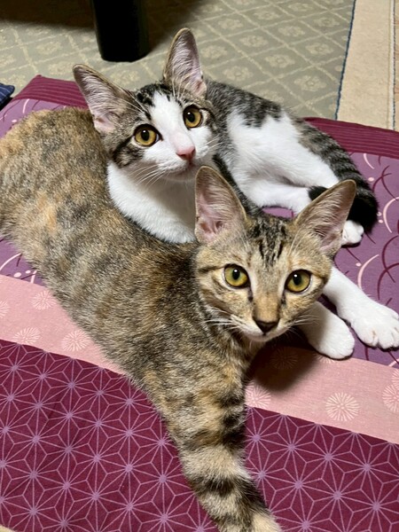 | 里親募集する理由 | とあるお家のボンネットの中に親子で入り込んでいたところを救出しました。 ママ猫:ジャフィー 兄妹猫:アルト ステラ 現在預りボランティア宅で家猫修行中!! 預かりボランティア宅での様子はコチラ↓ https://www.instagram.com/yosi.d.a/ |
