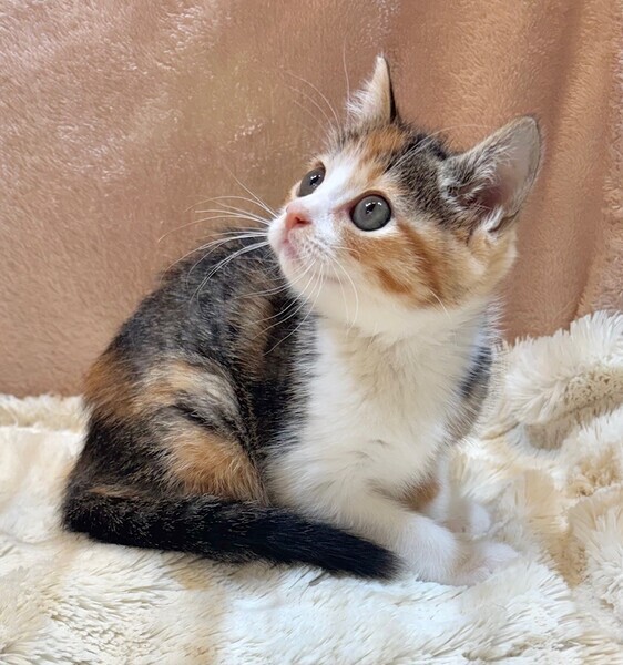 | 特徴(性格など) | 【仮名】マチャミちゃん 【性格】丸顔がキュートなマチャミちゃん♪ 兄妹の中でも一番カワイイ(偏見笑) ミケらしくおてんばで元気なにゃんこです♪ 先住さんのいるオウチでも大丈夫です。 兄妹&同世代の子とのお迎えをお願い致します。 ※1ピキ譲渡応相談 |