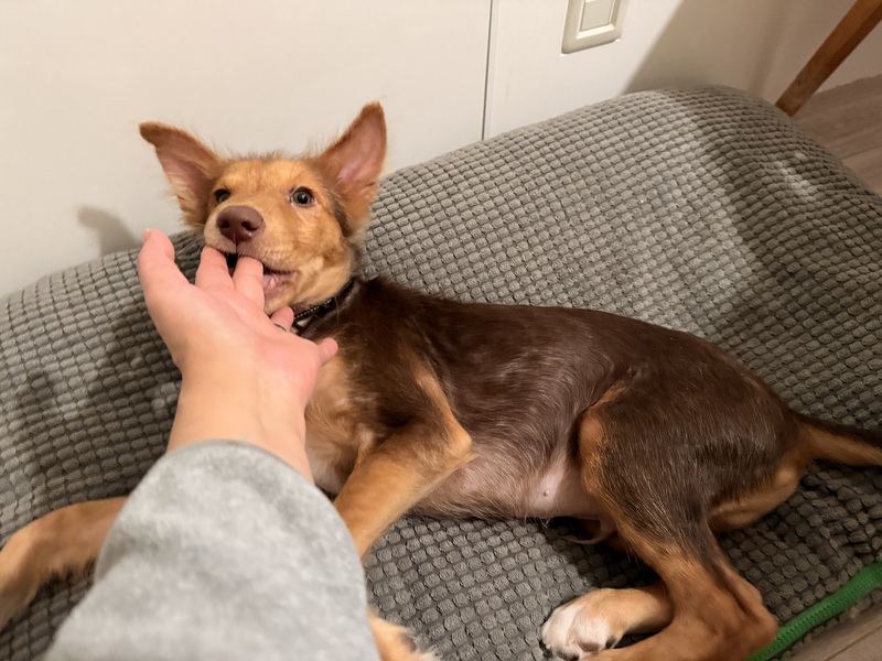 | 特徴(性格など) | 【人慣れ】最初は少し緊張しますが、すぐ慣れてくれるタイプです 【注意点】逃げたら見つからない子です。脱走・遁走防止にかなり注意が必要です。 【排泄】トイレの成功率は高いです。 【ご飯】好き嫌いなくよく食べます。 【病院】怖がりますが暴れません 【シャンプー】おとなしく洗わせます 【猫】遊びたいようで尻尾を振って近づきますがしつこくはしません。 【苦手】ケージ 【無駄吠え】あり(要求吠え) 推定3.5〜4.ヶ月で8キロ超え 将来的に20キロ超えの可能性あり。 鳶色の瞳でチョコレートカラーの可愛い子です。 ですが足はしっかり大きく、20キロ超えの可能性もあります。 皮膚が良い状態ではなく保護直後に病院へ。 深刻な疾患ではなく、栄養不足、不衛生な環境、免疫力の低下が関係しているようです 膿皮症もあり、抗生剤と薬用シャンプーで治療中でしたが無事治療終了しましツヤツヤよ毛艶になりました。 食欲もあり元気いっぱいです。 野犬もしくは人との関係性が木薄な多頭現場などからと思われ、最初は人間が苦手でしたが、それでも逃げたり隠れて出てこないことはなく、好奇心と食欲であっさり近くに来ちゃう子犬らしい面もあります。 最初は少し緊張しますが、人慣れも早い子犬らしい子です。 どんどん慣れてきてやんちゃになってます。 トイレはシートにできています。 失敗はほとんどありません。 元気で悪戯も多く自我も出てきてますが、比較的声の届くトレーニングのしやすいタイプかと思います。 ですが大型犬の要素も持っている子です。 吠える気質もあります。環境によってはお互いのストレスになりますので、十分考えてからお問い合わせ下さい。 吠え気質の件も含め躾ができる方にお願いしたく、この子に時間のとれるご家族にお願いしたい子です。 |