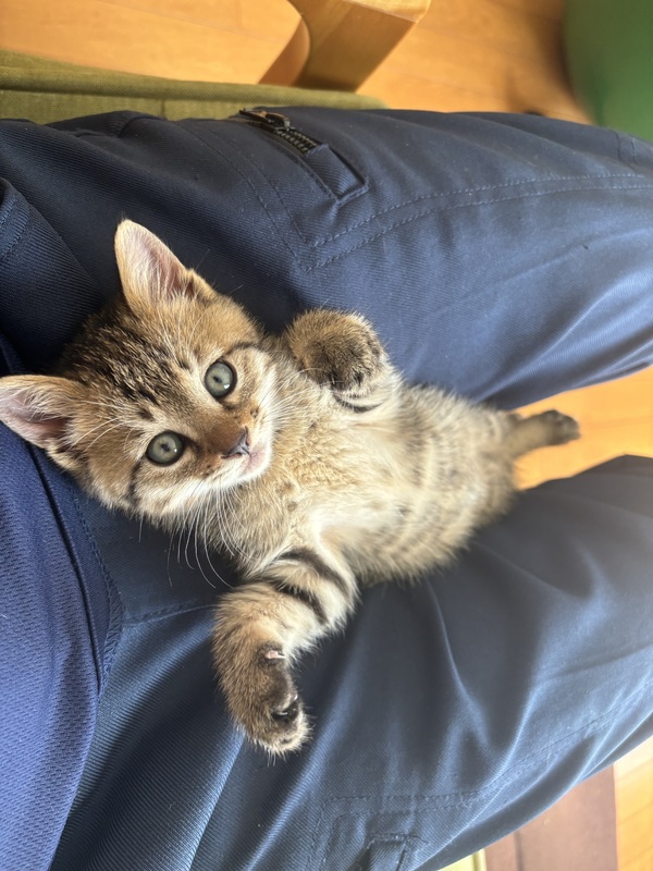 | 特徴(性格など) | 4匹いた仔猫ちゃんたちも里親希望者さんのおかげで仔猫ちゃんも残り1匹となりました。ありがとうございました。 キジトラのオスです。4匹いた時はヤンチャで常に誰かにちょっかいをかけてましたが1匹になってからは甘え坊に代わり常に人の側にいます。いい里親希望者さんに出会えたらなと思います。よろしくお願いします。 |