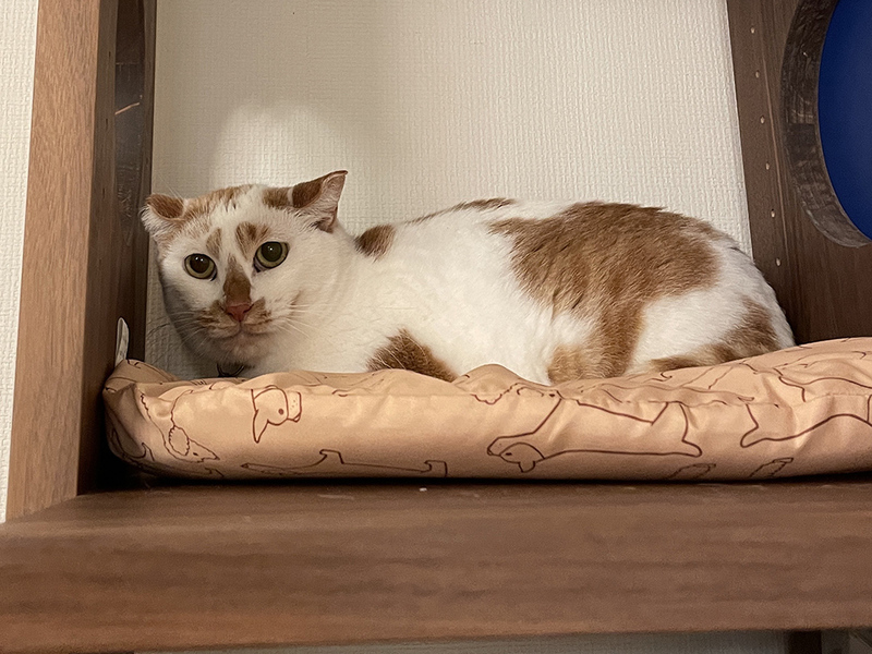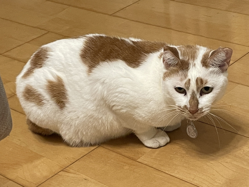 | 特徴(性格など) | ■□ 性格 □■ かなり奥手で慎重派。団体でお世話をするようになって1ヵ月以上経った今も、自分から甘えてくるようなことはなく、基本的にケージの中でじーっとしています。 夜になって人間が寝静まるとケージからそろ~っと出てきて、室内をぐるり。10分くらいするとまたケージに戻って、満足げに(?)またケージに戻って丸まって寝る。今はそんな1日を過ごしています。 奥手で慎重なきなこですが、攻撃的な面はありません。顔や体を撫でても怒りませんし(最初のうちはシャーシャー言ってましたが、慣れたら言わなくなりました)、むしろ最近では撫でられると気持ちよさそうにのどをゴロゴロと鳴らしたり、顔をうっとりさせて甘えてくるほどにもなりました。 ちなみに、きなこの耳は先が少し欠けていますが、いわゆる“さくら耳”とは異なる欠け方をしています(左右ともに先が欠けています)。 生まれつきか、はたまた他の動物にかじられたか。理由はわかりませんが、健康上に問題はありませんし、これもチャームポイントということでご理解ください。 ■□ ごはん □■ 好き嫌いはほとんどなく、よく食べます。 おとなしい≒マイペース、なのかもしれませんが、環境の変化に動じることもほとんどなく、預かりボランティアさん宅に引っ越してからも、ほどなくしてあげたごはんは完食するほどです。 ちなみに、健康状態の項にも後述しますが、きなこは口腔環境があまり良くありません。奥歯はほとんどなく、残っている右下の奥歯も歯ぐきが頼りない…という感じです。 そんな状態でもドライフードをしっかり食べられることを考えると、この口の状態に慣れていると想像しています。 ■□ トイレ □■ おしっこもウンチも、ケージの中のトイレで上手にできています。室内フリーにしているときも、室内に置いているトイレを認識しており、一度もトイレ以外の場所に粗相したことがありません。 ■□ 爪とぎ □■ へんなところで爪とぎするわけでもなく、きちんと爪とぎ器でしてくれます。 ちなみに、預かりボランティアさん宅で使用している爪とぎは段ボール製のものです。 ■□ 留守番 □■ ケージの中で落ち着いてひとりで過ごすことができます。現状では誤飲や粗相はないので、室内フリーでも安心してお留守番してもらえます。 ■□ 他の猫との関係性 □■ 一次保護宅では、同じく里親募集をしていた紗々と同部屋にいたのですが、健康診断が終わるまでの短期間だったのできなこはケージ生活…というわけで、紗々とは触れ合わず。 ただ、紗々のことを気にする素振りはなく、ケージ生活の初日からごはんを食べられていました。以前は多頭飼育だったそうなので、他の猫がいること自体は問題なさそうです。 ただ、他の猫とコミュニケーションを取るのは苦手なようです。 おとなしくて慎重派なきなこなので、自らケンカをしかけたりはしないと思いますが、預かりボランティアさん宅にも先住猫はいないため、直近では他の猫と接する機会はほとんどなかった…ということだけお伝えしておきます。 ■□ 健康状態 □■ 横浜市動物愛護センターにいるときに複数回にわたって下痢をしたとの引き継ぎを受けており、それも鑑みて健康診断を行いました。 血液検査の結果として大きな異常は見られませんでしたが、受け入れ時の健康診断・エコー検査で以下のような点を指摘されています。 1.十二指腸起始部に黒い影がある 2.腸壁が厚みを持ち始めている 3.口腔環境が良くない ======= 1.十二指腸起始部に黒い影がある 胃から十二指腸へと続く部位である「十二指腸起始部」に、2mm程度の黒くボコボコとした影が発見されています。 現状では気にするほどの大きさではありませんが、将来的にリンパ腫や好酸球性硬化性線維増殖症(GESF/ゲスフ)に発展する可能性がなくはない、という見立てです。 2.腸壁が厚みを持ち始めている 本当にちょっとした厚み…程度なので、現状では気にするほどではありませんが、厚みが顕著になってくるとリンパ腫などを疑う所見、とのことでした。 ただ、現状では厚みはそれほどではなく、また確定診断を下すには難しい箇所ということもあり、様子見としています。 ※再度、頻回にわたって下痢をしたり、また嘔吐が見られたりしたら改めて検査しますが、現状ではその兆候はありません。 3.口腔環境が良くない 奥歯がほとんどなく、残っているのは右下の犬歯のすぐ隣の小さな歯だけ、という状況です。かつ、この残っている歯も支えている歯ぐきが頼りなく、健康な歯・歯ぐきとは言えない、とのことでした。 他の、抜けた奥歯の歯ぐきもキレイな状態ではなく、手術で抜歯したというよりは自然に抜けた可能性がありそう、との見立てです。 ただ、食事の項での前述していますが、その状態でもごはんはしっかり食べられているので、こちらも様子見としています。 ======= 【横浜市動物愛護センターでの処置の経過】 ■2025年1月
