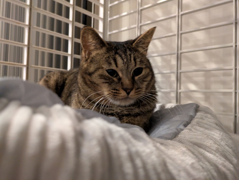 | 特徴(性格など) | 色柄 キジトラ 性格・特徴 ・一度譲渡したのですが飼い主都合で戻ってきました ・譲渡先で2回外にでてます。 脱走注意です。 ・臆病です ・人のいる部屋で飼養してください .仲良くしたい猫に対してなきます ・しっぽは長いです ・猫と仲良くなれます .人を怖がります ・ちゅーる好きです |