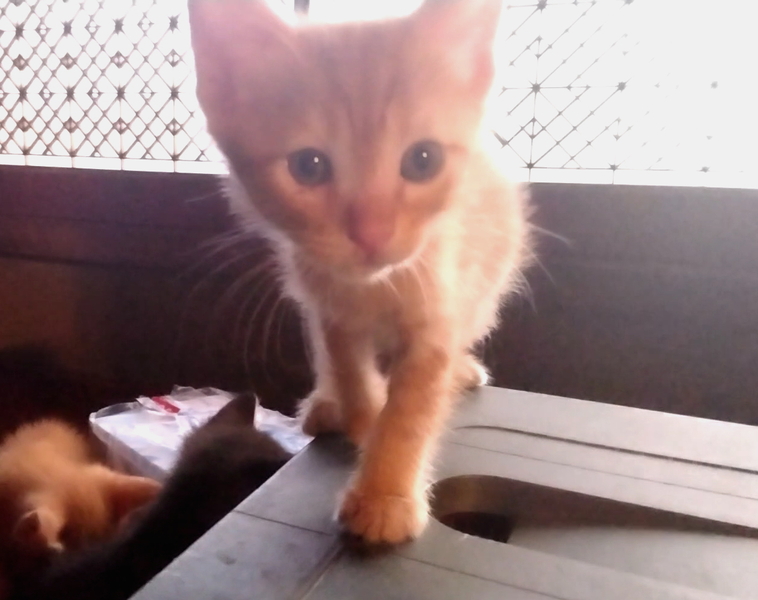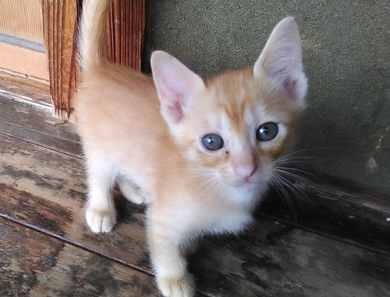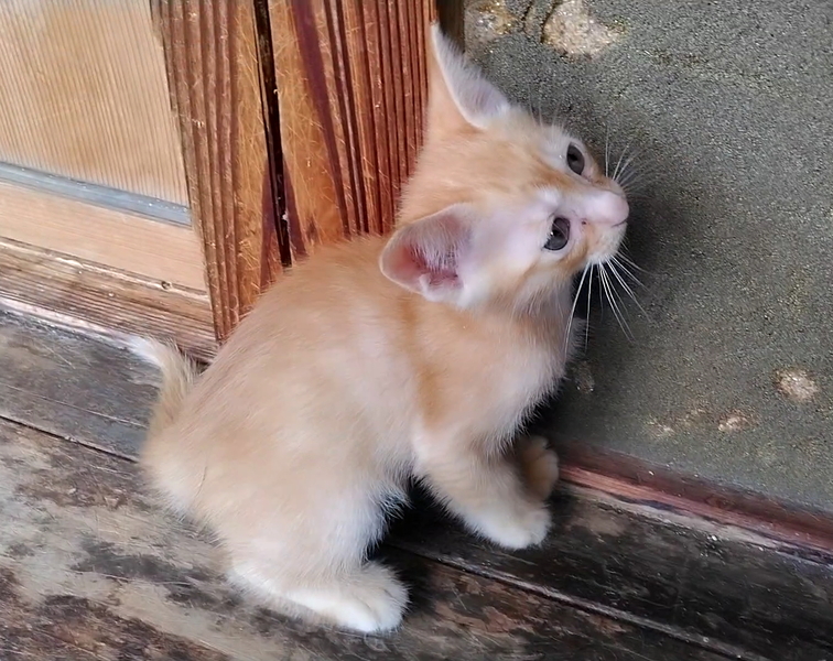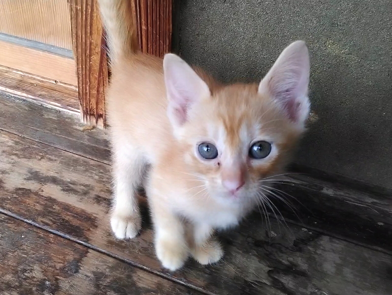 | 特徴(性格など) | 黄金色の美しい毛色です。4兄弟のうち3匹が茶トラでよく似てなかなか見分けが付きません。 よく懐いています。男の兄弟よりもやんちゃで、暴れまわっています。 |