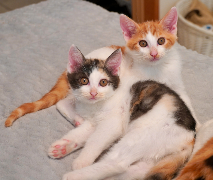 | 特徴(性格など) | 【元気で超可愛い!甘えんぼ仲良し兄妹♡みずきくん&まるみちゃん♪(ペアのみ)】 明るいカラーのチャトラ&ホワイト(茶白)と縞模様がとっても素敵な いけめんボーイ「みずき」くん と まんまるお顔が超絶キュートな薄三毛(薄いカラーです)のおんなのこ 「まるみ」ちゃん♡ ふたりは生後2か月になるかならないか・・・というくらいの 元気いっぱいな健康優良児です^^ 幼い頃から猫のママと人間のママに育てられてきていますので 猫どうしも仲良くなれますし 人間のこともだーいすき! お膝に乗ってくるだけでなく、肩乗りまでしちゃいます笑♪ 小さな体で人によじ登ってくる様子は悶絶級のかわいさ! 文句なく、どなた様にも自信をもっておすすめできる子たちです。 いつもくっついて一緒に寝て、一緒に遊んでいる仲良し兄妹なので ふたり一緒にお迎えくださる方を探しています。 きょうだいの子猫2匹ペアでお迎えされますと、相性もバッチリですし くっついてねんねしたり、一緒に遊ぶ姿を見て癒されることまちがいなし! ご家庭に笑顔が増えますよ♪ 2匹ペアでお迎えすることのメリットは ・まさに社会化期の大切な時期なので、一緒にいることで必要なことを学べる ・情緒が安定するので、とっても良い子に育ちますし、問題行動も出ない ・ふたり一緒に新たな環境に行けると、環境の変化にもなじみやすい ・子猫の体調の変化は見逃さないほうが良いので、2匹を比べることで変化に気づきやすい ・お留守番のあるご家庭も、ふたり一緒なので安心 と、メリットたくさん!! 正直にお伝えしまして、お世話の手間は1匹でのお迎えと変わりません。 心理的に2匹は・・・というハードルがあることは承知しておりますが 1匹の猫さんに慣れたところに後から2匹目をお迎えされるほうがかなり大変です。 (これは断言します) なので、将来的に2匹お迎えしたいとお考えの方は 最初から仲良し2匹ペアでのお迎えをおすすめします♪ なにかご心配なことやわからないことがありましたら どの時点でも(正式譲渡後でも)お気軽にお尋ねください^^ フォローもバッチリいたします♪ 可愛い可愛いふたりに、愛情いっぱい注いでくださる本当のご家族ができますように! みずきくんとまるみちゃんの仲良し可愛いじゃらし動画↓ https://youtube.com/shorts/VXohRmbwNEo?si=bXy1i0ZqBksBTueC マッチング; ◎ご家族世帯 ○単身ご世帯 ◎大人世帯 ↑※○乳児 ○幼稚園児 ○小学校低学年 ◎小学校高学年以上 ◎お留守番 ※お留守番はできますが、甘えん坊なので在宅時にたくさん構ってあげてください ◎猫さんとベタベタしたい人 ▲猫さんとある程度の距離が必要な人 ◎猫飼い初めてさん ◎猫ベテランさん △猫以外の先住動物がいるご家庭 ◎多頭飼育 【健康状態】 良好です。元気いっぱい! ●3種ワクチン1回接種済み(生後2ヶ月齢) ●ノミダニ駆除済み ●お腹の虫の駆虫済み ●便検査済み ( - ) ●ウイルス検査済み 猫エイズ( ― ) 猫白血病( ― ) ※ママ猫も陰性なのでご安心ください ●シャンプー済み ●爪切り済み ●お耳掃除済み 医療費や養育費の一部ご協力金として、 生後2ヶ月齢(ワクチン1回済み)での譲渡で1匹あたり10000円 生後3ヶ月齢(ワクチン2回済み)での譲渡で1匹あたり13000円をお願い致します。 |