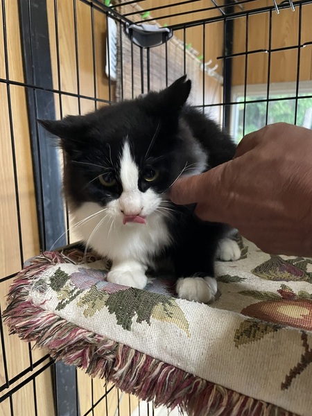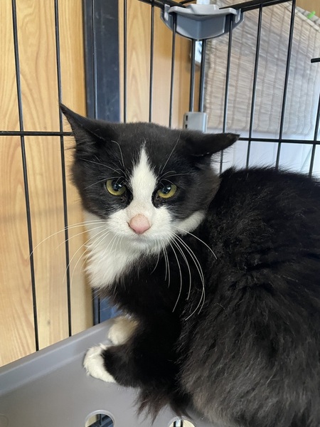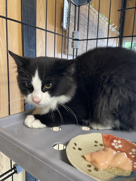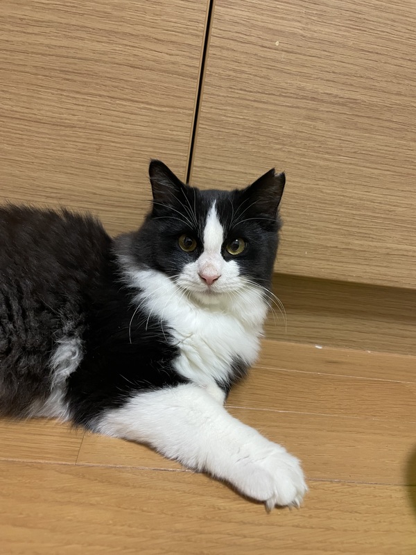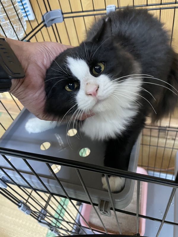 | 特徴(性格など) | 白黒ハチワレの長毛の男の子です。 シャーシャー言いますが触れるし抱っこも出来ます。 撫でるとゴロゴロ言って懐っこい子です。 |