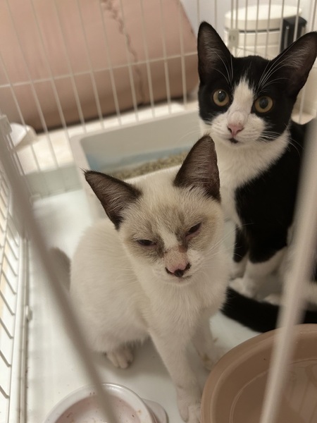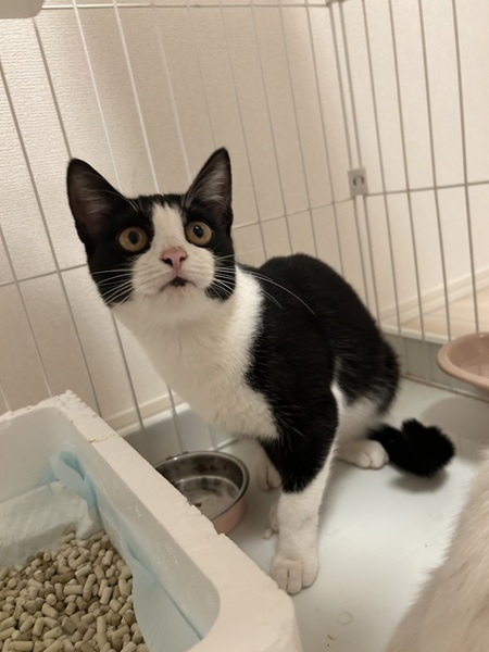 | 里親募集する理由 | 家の近くにガリガリに痩せて2匹でいたところを保護しました。 一緒に大きめハチワレもいたため(かなり警戒心が強く捕まえられない)その子が親で、写真に乗っている白猫とハチワレは兄弟かと思いましたが、白猫は3~4か月、こちらのハチワレは半年から1年以内とのことでした。 体重はかなり増えてきて、2㎏越しました。 TNRの予定で考えていましたが、かなり人懐こいのでこのまま外に話すのがとても不安なため、引き取ってくださる方を探しています。 |