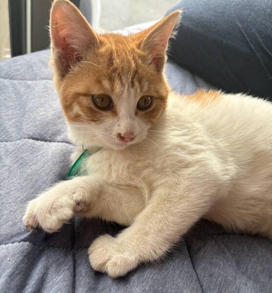 | 特徴(性格など) | 名前:プッチ 性別:男の子 年齢:生後3ヶ月 体重:1.5kg 猫種:雑種 毛色:白と茶 とても穏やかで、スリスリゴロゴロ甘えん坊の男の子。トイレも完璧です。 |