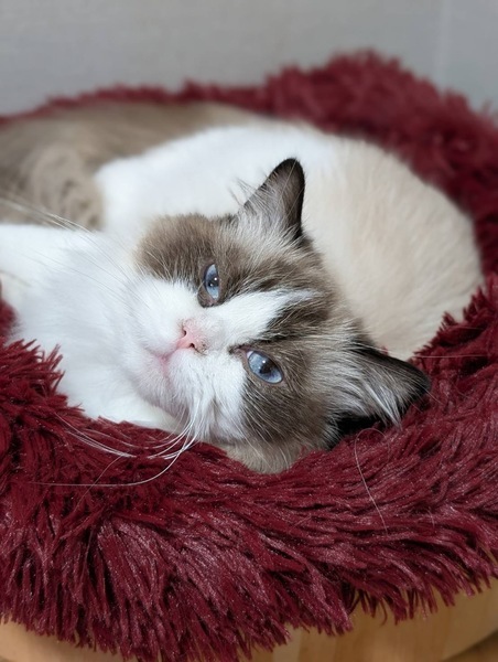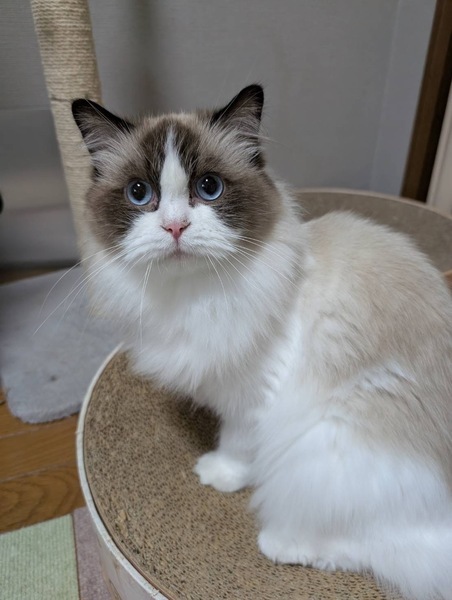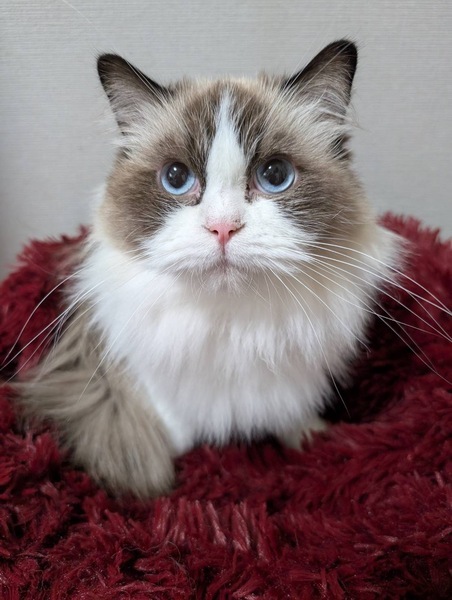| 特徴(性格など) | 名前(仮): ベア 性別: メス 種類: ラグドール 毛色: シールポイントバイカラー 年齢: 2024年6月1日生まれ 体重: 3.6kg 保護経緯: ブリーダーからの保護 性格: 人懐っこく甘えん坊 トイレ: システムトイレ 日常の様子:最初は警戒していましたが、数日後には甘えん坊になりました。人が好きみたいです。猫とは相性次第で問題なく過ごせます。 お手入れ:シャンプータオルでこまめに拭いて、ブラッシングで清潔を保ってください フード: ロイヤルカナン+ウェット 保護日: 2025年10月23日 健康状態 抗体検査:(FIV・FeLV)マイナス ワクチン:3種混合接種済み マイクロチップ:装着済み 避妊・去勢:手術済み その他:聴診・検便 異常なし、ノミダニ駆除済み・駆虫薬投与済み |