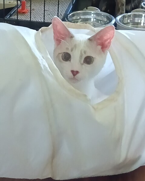 | 特徴(性格など) | 白ベージュ色のシャム系、青い目のきれいな男の子です。 好奇心旺盛、元気いっぱい。甘えん坊さんです。 健康状態良好です。 子猫用ドライフードをよく食べて兄妹で走りまわって遊んでいます。 兄妹の雪ちゃんと一緒にお迎えしてくれる方を希望します。 |