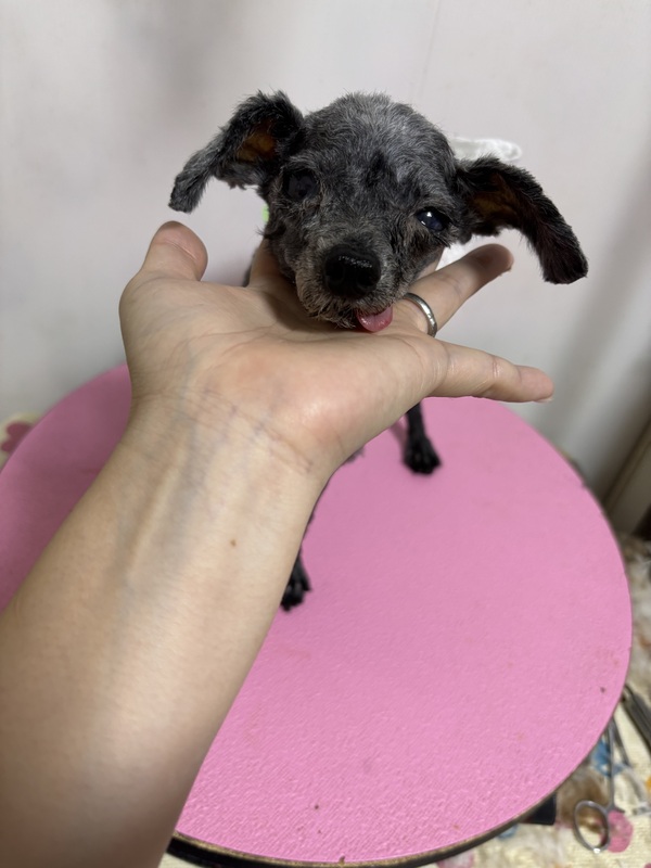 | 特徴(性格など) | 1.6キロ程の小さな小さな男の子です。 人も犬にもとてもフレンドリーな性格。 右目だけ緑内障の可能性有り。 歯肉炎の影響か?下顎吸収されていますが食事はしっかり自分でとれています。 ※緑内障目薬投薬のみ必要ですがその他健康状態問題ないです。 皮膚被毛の状態が悪く一旦リセットでツルツルカットにしておりますが現在は皮膚の調子は問題ないため、また綺麗に可愛く毛は伸びてきます^ ^ |