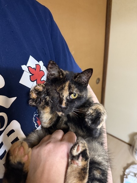 | 特徴(性格など) | ・アピールポイント:とにかく人懐こいです。スリスリしたり頭突きをしたりカプッと甘噛みしたりと忙しいです。人が大好きなようです。 ・譲渡先の希望:推測ですが、小さい頃の猫風邪の影響により片目が萎縮してしまい、現在眼球はなく、涙腺などは残っており、そのためかたまに膿のような物が出ます。あまりにも炎症が酷くなれば、将来的には摘出手術が必要になります。そういったこともご理解下さり、北要な医療にかけて下さる方。 ・健康状態:良好です。 エイズ 陰性 白血病 陰性 |