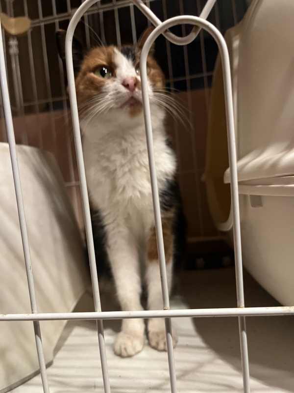 | 里親募集する理由 | 2日前に突然迷い込んできて、家のウッドデッキにずっといて、隙あれば家に入ろうとしていました。ガリガリに痩せていた上、昨夜から冷え込んできたので、近所の方にゲージを借りて自宅内で保護しました。 長期出張が多いため、我が家では飼えないので、可愛がってくれる人を募集します。  |