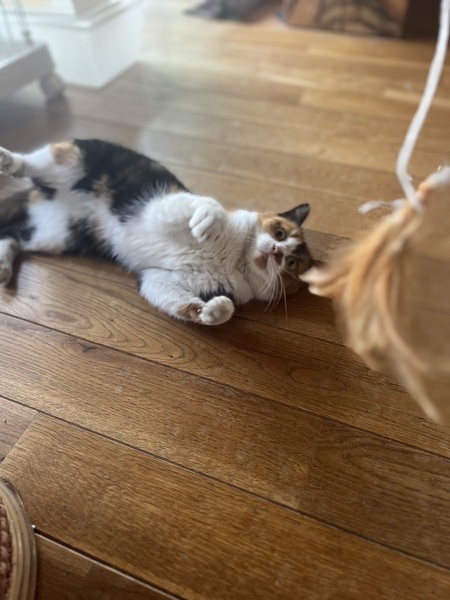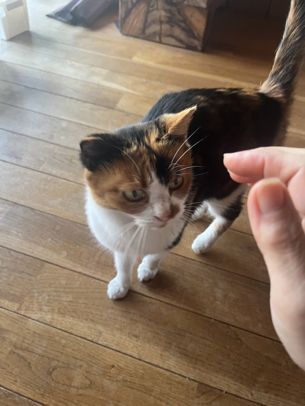 | 特徴(性格など) | ミケ、人懐っこく甘えん坊 撫でると、ふみふみしながら、ゴロゴロ。 まだ少し怯えていて、大きな音がすると、すぐ隠れますが、キャットフードの袋の音で出てきます(笑) 日に日に慣れてきて、おもちゃで遊ぶようになりました。 |