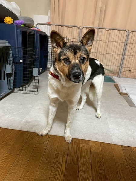 | 特徴(性格など) | ローズ 雑種女子 2020年〜2022年生まれ(推定) 避妊手術、ワクチン、マイクロチップ、血液検査済み、血液検査結果異常なし。フィラリア陰性。 ビビリなシャクレレディはおしゃれなホルスタイン柄!おめめもとっても綺麗だよ! 犬には当たらず障らずを保ちます。 まだきて間もないため猫をかぶってる可能性は大いにありますが、控えめさんです。 人間も外もまだまだ怖いですが、クレートや隅に篭らずウロウロし、人のそばに自分から座りにこれるので可能性は無限大。 〈フード〉 フードは現時点ではフィジカライフのふやかしたもののみ。時折、他のカリカリをそまま食べることもあり未だ模索中。 朝はほぼ食べず、昼か夜はガッツリ食べます。 魚よりお肉派。硬いおやつは食べたことないのか口にしません。 〈トイレ〉 シートでできるようですがほぼ外です。 慣れるまで1日以上出さないこともあります。 〈散歩〉 大好き。障害が少ないところなら尻尾あげてるんるんします。ブヒブヒお鼻を鳴らしてクン活します。マーキングはしません。 〈注意〉 普段は問題ないですが急にジャンプ&ピチピチするのでしっかりしたハーネスでゆるみない装着が必須です。 リード噛んだりは今のところないです。 |