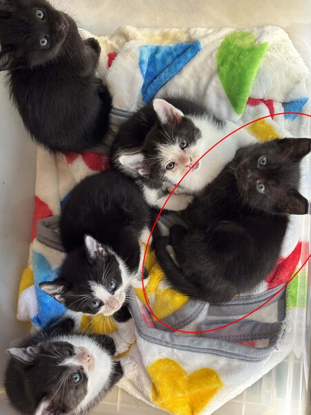 | 特徴(性格など) | 今現在の体重は 500~600g 程で、生後1ヶ月ほどくらいです。 まだ、母猫の母乳を飲んでいますが、離乳食も食べ始めています。 暴れまわる時もあり、みんな健康体で元気な様子です。 人間に対して攻撃的なこともなく、どの子猫もおとなしいですが走り回って元気です。 良い写真が撮影できたら追加予定です。 |