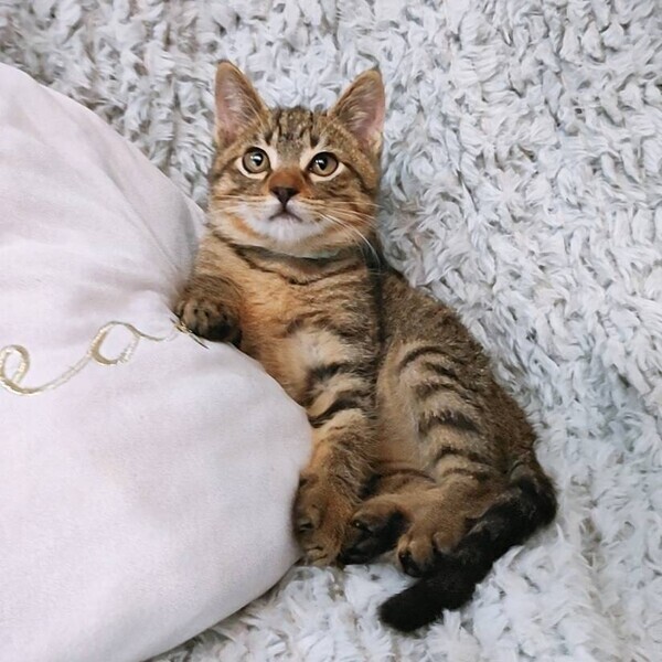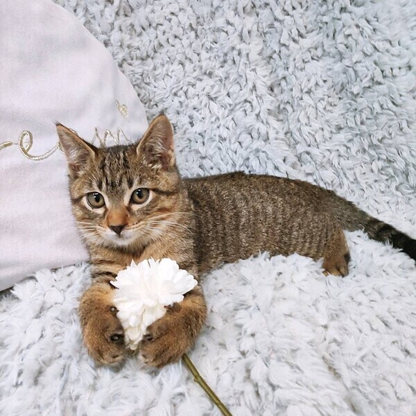 | 特徴(性格など) | 【仮名】チワくん 【性格】兄妹唯一キジトラのチワくん♪ とわいえ顔面偏差値はかなり高め(笑) 丸顔でチョ~可愛いにゃんこです♪ このコは超マイペースでおっとりさん♪ 遊びより三度のメシより抱っこが大好き! ヌイグルミのようなコロコロ体系は みなさんに癒しをお届けしますよ♪ 甘える時の鳴き声にも要注目! 仲良し兄妹なので是非ペアでの お迎えをお願いします♪ ※1ピキ譲渡応相談 |