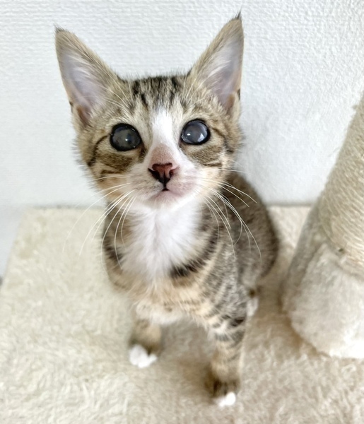 | 特徴(性格など) | 【仮名】瞳ちゃん 【性格】キラキラおメメをもつ瞳ちゃん♪ 保護時の状態が悪くて治療後も若干の白濁は残ってますが 日常生活に支障は一切ありません♪ ベージュキジトラ&ソックス柄の 可愛い模様をもった美にゃんこです♪ 小柄ながら以外にもパワフルでキャットタワーの1番上まで あっ!という間に登ってお昼寝します♪ 一緒に過ごす光くんと仲良しで いつも遊んだりにゃんプロしてるので ペアでのお迎えを希望します♪ ※1ピキ譲渡不可 |