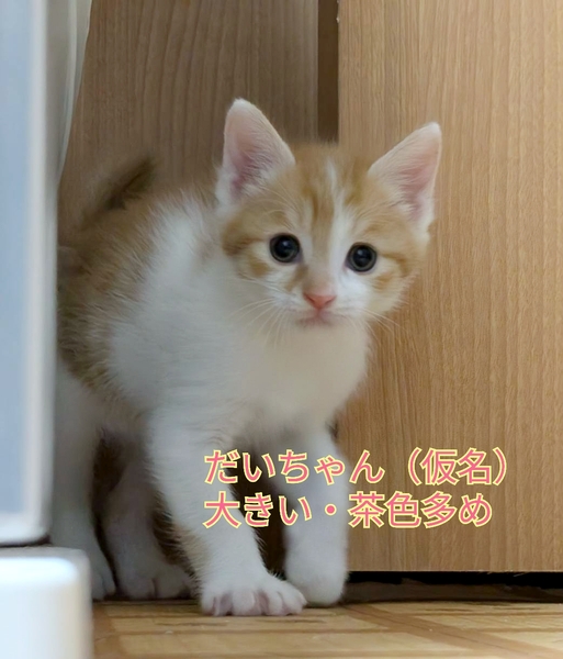 | 特徴(性格など) | とても元気な茶白兄弟です。 大きめ茶色多めがだいちゃん(仮名) 小さめ茶色少なめがしょうちゃん(仮名) |