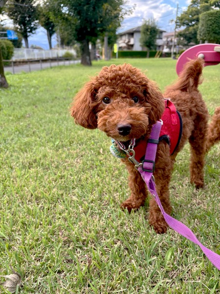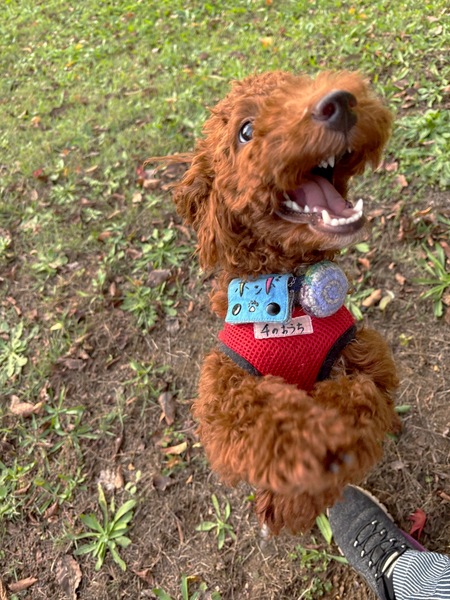 | 特徴(性格など) | 【はじめに】 ◉預かりブログ・HP・譲渡条件を【必ず】熟読の上、アグリドッグレスキュの専用フォームからご応募お願いいたします アグリドッグレスキューHP https://aguri.nomaki.jp/ 預かりブログ『オバチャンちに来るかい?』 →https://ameblo.jp/ti952 譲渡条件 http://aguri.nomaki.jp/z.html ★【アグリドックレスキュー応募アンケートフォーム】★ http://my.formman.com/form/pc/HSiHA19xGo1sxlwu/ ・トイプードルの男の子 ・6ヶ月(2025年4月生まれ) ・体重3.3kg ・混合ワクチン(1回目済 ) ・便検査(済) ・マイクロチップ装着(済) ・血液検査 (済) ・フィラリア検査(ー) ・狂犬病予防接種 (済) ・去勢手術 (済) ※パテラ(右)G2(現時点で治療の必要なし) □性格 元気いっぱい好奇心旺盛な男の子です。 少し怖がりで人見知りもありますが、一度心を許すと超甘えん坊に変身!! 最近、独占欲が出てきたようです。 とてもすばしこく、ジャンプ力もあるので、指定の脱走対策をしっかり行ってください。 現在、犬・ネコと暮らしていますが、じゃれついてしまうので、のんびり暮らしたい先住犬や先住猫さんだったら疲れてしまうかも。 □食事 朝夕2回、カリカリフード食べています。 野菜スープやオヤツ、何でも食べます。 食への執着が強いので、他犬と一緒の時には注意が必要です。 人の食事にも興味があり、隙あらばテーブルに乗ってしまいます。 □ トイレ 室内・屋外、どちらでも排泄します。 室内のシート認識はありますが、まだ失敗もあります。 トイレトレーニング継続中なので、今後も広い心で見守ってください。 □ 散歩 散歩は大好きです。 グイグイ引っ張るので、まだ練習は必要です。 散歩時には、以下の事をお願いします。 ・ダブルリングの首輪を使用してください。 ・ショルダーダブルリード(Y字リード)をハーネスと首輪へ装着してください。 ・伸縮リードは使用しないでください。 ・安全の為、中学生以下のお子様・高齢の方の散歩はお控えください。 □車 車酔いはありません。 □留守番 現在は、他の犬や猫と一緒に留守番しています。 1頭での留守番は未経験です。 まだ社会経験が未熟なので、お留守番の短いお家を希望します。 |