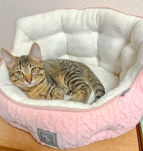| 特徴(性格など) | チャームポイントは、わんぱくなのに、めちゃくちゃ甘えん坊なその性格(*´꒳`*)♡ バチっと目も合わせてくれます! 帰宅すると、急いで走ってきてくれて、 「おかえり!撫でて撫でて!」と足元をウロウロ。 たくさん鳴いて嬉しそうにお出迎えしてくれます〜! 鳴き声は「ニャー」じゃなくて、「ピャー‼︎」 毎日元気な声で挨拶してくれるんです♪ 保護初日から人に慣れており怖がることもありませんでした。 素直で可愛いらしい子猫ちゃんです♡ こんな可愛い子が、今まで外でずっと頑張っていたと思うとウルルときます(;_;) 今ではしっかりご飯も食べて、スヤスヤ安心して寝ています。 夜寝るときも人にひっついてくれます! お腹の上に乗ってゴロゴロもしてくれました♡ カメラを向けると、「そんなことよりボクを撫でて!!」と頭突きをしてきます(*^▽^*) 良い写真が撮れるまで何度もチャレンジしてます(笑) 一緒に保護した兄弟猫さんと一緒に遊ぶのが大好きで、 追いかけっこして元気に走り回ってます(*^^*) 猫じゃらしもすごく喜んでくれます! この子には、幸せな猫生を送ってもらいたいです!! 保護当時の体重:650グラム 11/4時点の体重:1.6kg 初回ワクチン接種:10/10完了(5種ワクチン) 1回目の血液検査は、猫エイズ・猫白血病ともに陰性でした!! もりもりご飯を食べて、元気に走り回る健康な子猫さんです♪ |