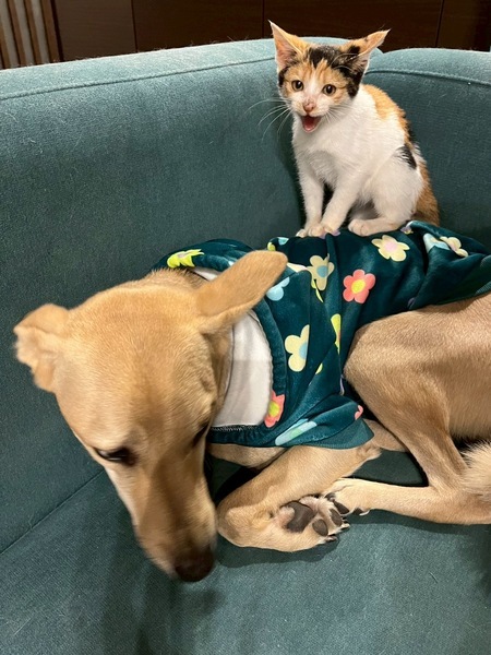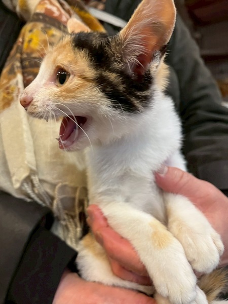 | 特徴(性格など) | ちいちゃくて可愛い三毛猫のヨサノちゃんです。環境に慣れるまでは薄くシャーしますがそれがまた可愛いです。 三毛子猫2959 10/15、3種混合ワクチン接種済み、ノミダニ駆除お腹の駆虫済み、エイズ白血病陰性、 マイクロチップ済み。 |