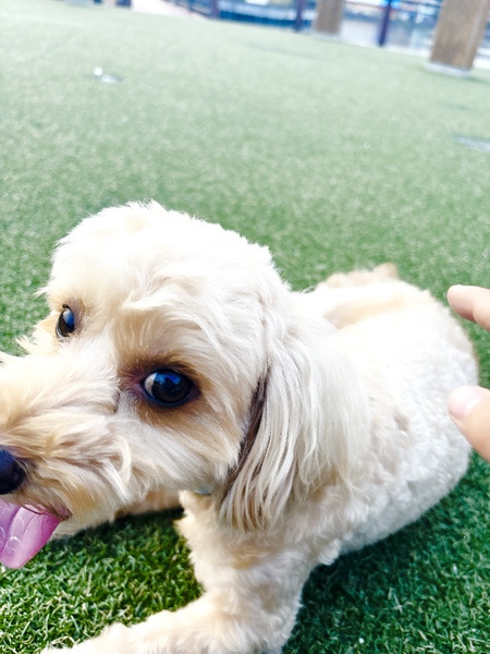 | 特徴(性格など) | お散歩が大好きなマルプーの男の子です。 家の中では、後ろをついて来たり、人懐っこい性格です。 ボールで遊ぶのが大好きです。 茶色のふわふわ毛並みをしていて、月に一度トリミングに通っています。 トイレは朝晩のお散歩の時に済ませています。 |