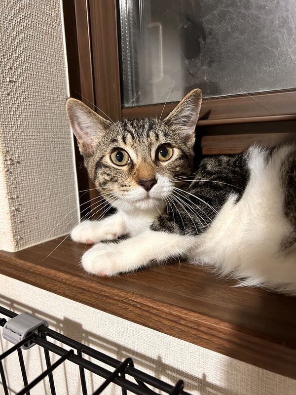 | 特徴(性格など) | キジ白短毛 保護から3ヶ月1番シャーシャーだった大地くんが人の手も怖くなくなりシャー言う事もなくなり抱っこヨシヨシOKになりゴロゴロ猫になりました?? 人馴れ急上昇? |