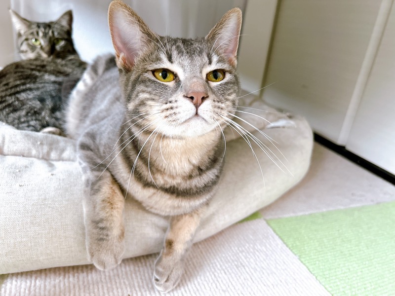 | 特徴(性格など) | 2025.7.23生まれ(推定) 毛色:サバトラ いっぱい鳴いて感情を表す賢い女の子。 パステルカラーでとても綺麗なお色です。 新しいもの、場所には臆病で神経質になることもありますが、人間にはすぐ慣れます。 甘えんぼさんで、活発なお転婆さん。 |