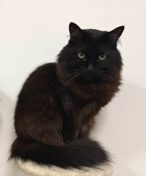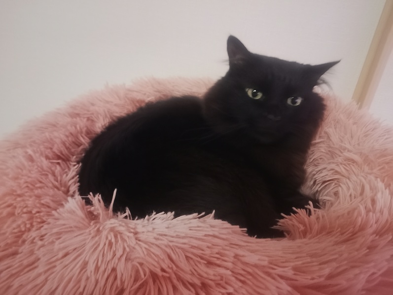 | 特徴(性格など) | 長毛の黒猫です。 臆病なところがあり最初は隠れてしまったりしますが、慣れたらスリスリゴロゴロと甘えてきてくれて、人のそばが大好きな甘えんぼうさんです。 まだまだやんちゃな一面もあります♪ 一匹飼いで愛情を注いでくださる家庭が合うかなと思います。 臆病な一面もありますが甘えん坊な黒猫ちゃんをあたたかく見守ってくださる方に可愛がっていただけましたら幸いです。 |