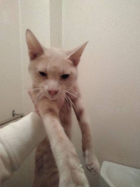 | 特徴(性格など) | クリーム色です。性格は優しい子です。 ご飯は食べたり食べなかったりします。パウチの方が好きみたいです。 ちょっと痩せ気味なので、病院に連れて行ってほしいと思います。 |
