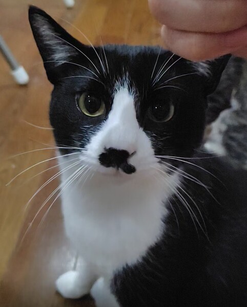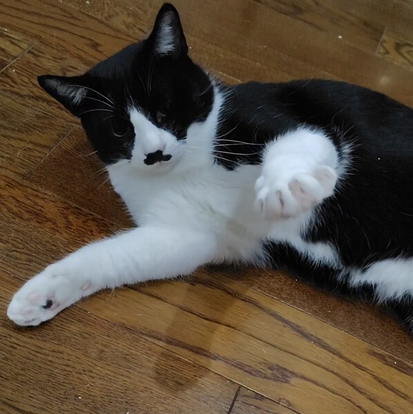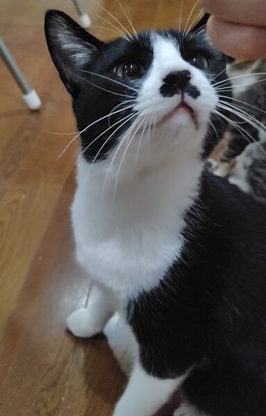 | 特徴(性格など) | スタンダードな白黒のハチワレ猫です。 座っていると正装しているみたいでかわいいです。 少し神経質なところがあり、仲良くなるまで数ヶ月かかるかもしれませんが、懐くと甘えん坊に変身します。 いつもそばに居たがります。 人の足や背中に控えめに頭をぶつけてきます。 なでなでは大好きですが、抱っこは嫌いです。 エイズ白血病マイナスです。 |