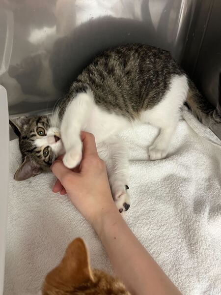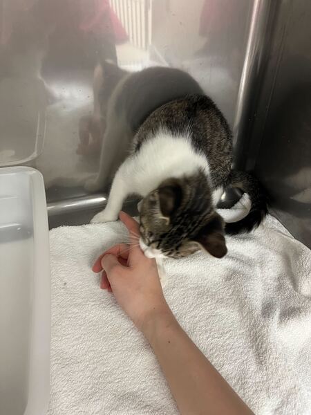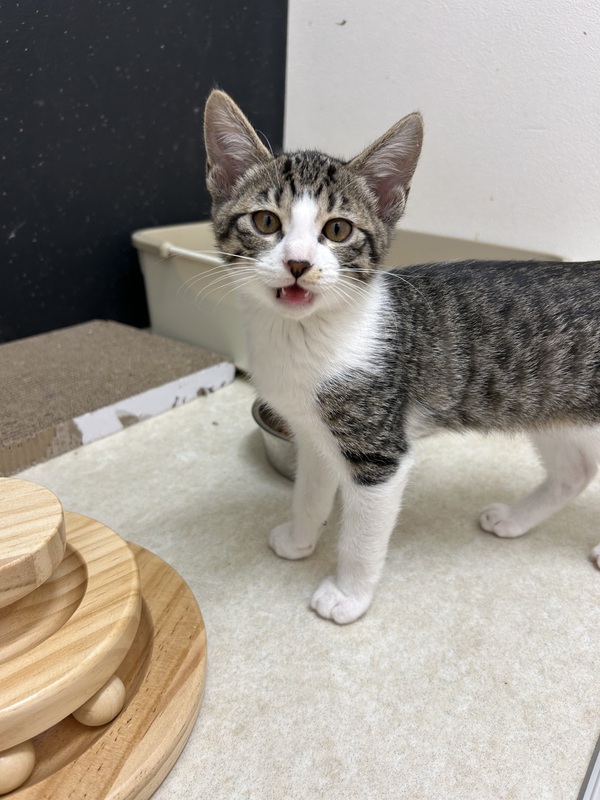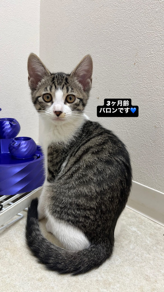 | 特徴(性格など) | 人懐っこいイケメンボーイバロンくんです! まだきたばかりですが、人懐っこさと元気パワーを早速発揮してくれています! 現在は子猫部屋で他の子猫たちと一緒に過ごしています。元気に遊んでいます! 顔立ちもとっても綺麗でイケメンに成長すること間違いなし! 先住猫さんがいるお家にも馴染みやすいかと思います。 可愛いバロンくんにぜひ会いにいらしてください! |