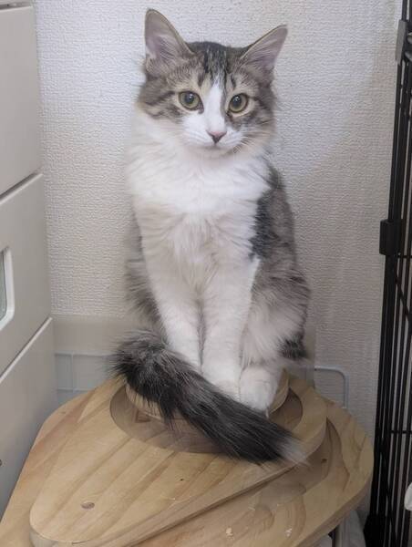 | 特徴(性格など) | 3月1日(日)12:00~16:00(最終申込15:30) ねこざんまい譲渡会【東日本橋会場】に参加予定です! 会場の案内はこちら♪ https://ameblo.jp/neko3mai/entry-12807190298.html ※猫ちゃんとのお見合いは譲渡会となります。 譲渡会ご来場につきまして、事前予約は不要です。 どうぞご家族みなさまでご来場下さい♪ ★★★ご来場前に必ずご確認下さい★★★ 《里親様へお願いはこちら》 http://www.neko3mai.com/condition/condition.html 《家族募集中猫ちゃん一覧はこちら》 http://www.neko3mai.com/entrycats/entrycats.html ◆ 名 前 ◆ ランちゃん ◆ 年齢 ◆ 8ヶ月半(2025.6.16頃生) ◆ 性別 ◆ 女の子 ◆性格は?◆ おっとりした性格と、ふわっとした半長毛で、長く見える尻尾がチャームポイントです。 上品で可愛い見た目に惹かれる方も多いと思います。 人馴れはもう一歩で、怖がりさんです。 たくさんの猫がいる保護部屋でお友達や兄妹と一緒に過ごしていますので、相性のよい2匹で一緒にお迎えていただけるご家庭を優先させていただきたいと思っています。 人馴れや新しい環境に慣れるまで時間がかかると思いますが、ランちゃんのペースに合わせて、ゆっくり距離を縮めてくださる優しいご家庭をお待ちしています。 猫は遊んであげ続ければ、いくつになっても遊びます。 毎日ねこじゃらしで真剣に遊んでくださるファミリー希望です。 お留守番ができる月齢ですが、一緒に過ごす時間が長い方が慣れます。 お申し込みは56歳位までとさせていただきます。 50歳以上の方はお子様など、後見人が必要です。 単身者、カップル、外国籍の方はお断りしております。 ご家族お揃いでのお見合いを希望いたします。 <ご確認ください> 脱走や危険防止対策を施した、整理整頓された清潔な環境づくりと、(特別な場合を除き)全てのお部屋の出入りが自由のお家を希望しております。間取り図や玄関やベランダなどの出入りがわかる写真または動画etcをお持ちいただくと、安全対策のアドバイスがしやすいです。猫以外のペットやハイシニア猫、幼児、後期高齢者がいらっしゃらるご家庭はお譲りできない可能性がございます。フード、キャリー、ケージ、トイレなど、一部の準備品を指定させていただいております。事前に飼育環境を見せていただき、整理整頓、脱走防止など万全の安全対策をお願いしております。-- 保護主-- |