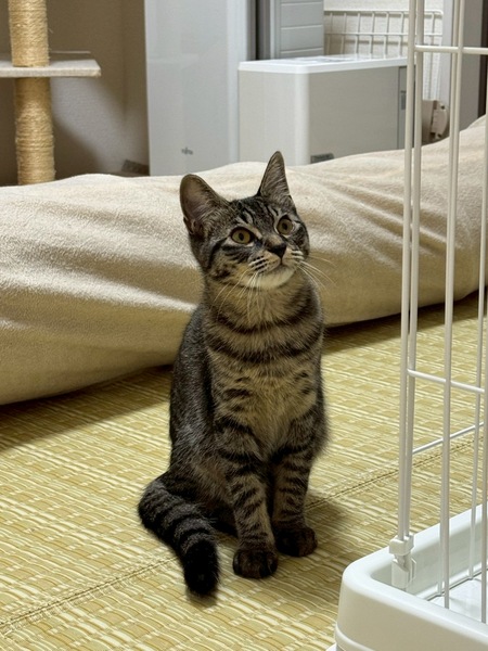 | 特徴(性格など) | キジトラ短毛 なんにでも興味津々? 活発、おてんばガール✨ 他の子と遊んでいると、 あたしも!あたしも!と、構ってアピール? 甘えんぼちゃんです☺️ ひとり遊びも得意です✨ |