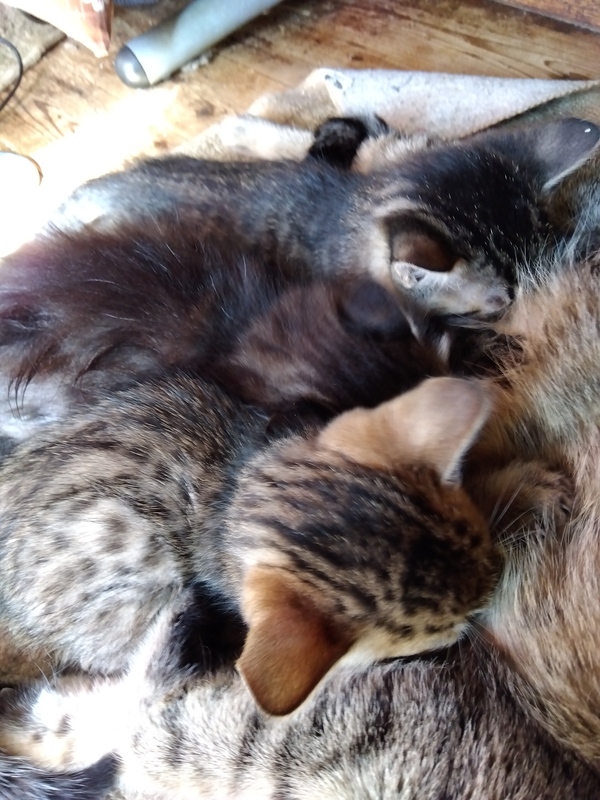 | 里親募集する理由 | 【理由】 自宅には親の子と2匹いるんですが、この子猫までは飼育できかねるので いつでも里親募集中ならきっと良い里親が見つかると思い募集しました。 真ん中にいる長毛のサバはもう引き取り相手がいます。 |
