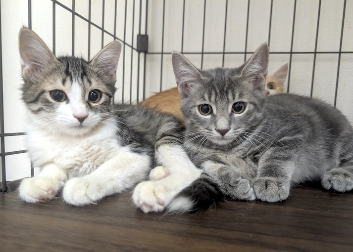 | 特徴(性格など) | 1月25日(日)12:00~16:00(最終申込15:30) ねこざんまい譲渡会【東日本橋会場】に参加予定です! 会場の案内はこちら♪ https://ameblo.jp/neko3mai/entry-12807190298.html ※猫ちゃんとのお見合いは譲渡会となります。 譲渡会ご来場につきまして、事前予約は不要です。 どうぞご家族みなさまでご来場下さい♪ ★★★ご来場前に必ずご確認下さい★★★ 《里親様へお願いはこちら》 http://www.neko3mai.com/condition/condition.html 《家族募集中猫ちゃん一覧はこちら》 http://www.neko3mai.com/entrycats/entrycats.html ◆ 名 前 ◆ ワクくん ◆ 年齢 ◆ 7ヶ月(2025.6.16頃生) ◆ 性別 ◆ 男の子 ◆性格は?◆ グレーのぐるぐる模様がとても可愛い、活発な男の子です。 現在は、人馴れしていないシャーシャー猫の影響で少しビクビクするところがありますが、本来はスキンシップも遊びも大好きな甘えん坊タイプ。へそ天で寝る姿には思わず笑みがこぼれます。 半長毛のランちゃんと兄妹で、いつもランちゃんの耳の後ろの毛をチュパチュパ吸ってしまう、まだ赤ちゃんらしい一面もあります。 これから安心できる環境で過ごせば、きっと甘えん坊としての魅力を存分に見せてくれると思います。 たくさんの猫がいる保護部屋でお友達や兄妹と一緒に過ごしていますので、相性のよい2匹で一緒にお迎えていただけるご家庭を優先させていただきたいと思っています。 新しい環境に慣れるまで少し時間がかかると思いますが、ランちゃんのペースに合わせて、ゆっくり見守っていただける優しいご家庭をお待ちしています。 猫は遊んであげ続ければ、いくつになっても遊びます。 毎日ねこじゃらしで真剣に遊んでくださるファミリー希望です。 お留守番時間についてはお見合いの際にご相談ください。 お申し込みは55歳位までとさせていただきます。 50歳以上の方はお子様など、後見人が必要です。 単身者、カップル、外国籍の方はお断りしております。 ご家族お揃いでのお見合いを希望いたします。 <ご確認ください> 脱走や危険防止対策を施した、整理整頓された清潔な環境づくりと、(特別な場合を除き)全てのお部屋の出入りが自由のお家を希望しております。間取り図や玄関やベランダなどの出入りがわかる写真または動画etcをお持ちいただくと、安全対策のアドバイスがしやすいです。猫以外のペットやハイシニア猫、幼児、後期高齢者がいらっしゃらるご家庭はお譲りできない可能性がございます。フード、キャリー、ケージ、トイレなど、一部の準備品を指定させていただいております。事前に飼育環境を見せていただき、整理整頓、脱走防止など万全の安全対策をお願いしております。-- 保護主-- |