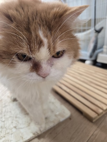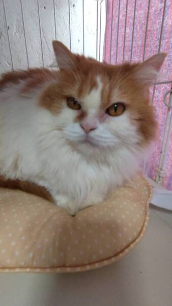 | 特徴(性格など) | ふわふわな女の子のめぐちゃんです。 おっとりとして、穏やかな優しい女の子です。ひどい膀胱炎で、専用のフードが必要です。 |