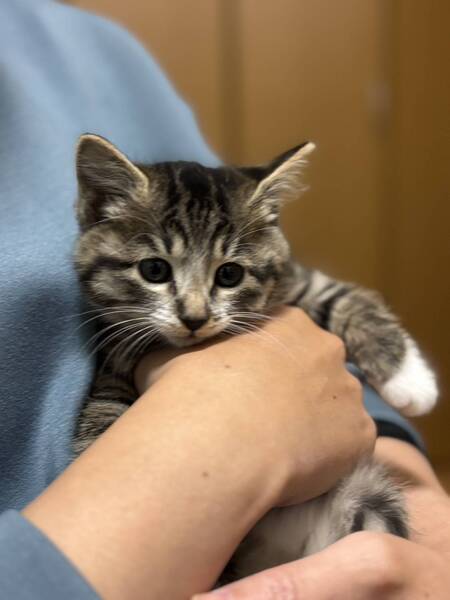 | 特徴(性格など) | 元気で小柄な女の子 フーフー威嚇しますが撫でるとゴロゴロ音を鳴らします あさちゃん、ひるくんと兄弟です ※トライアルはワクチン接種後となります |