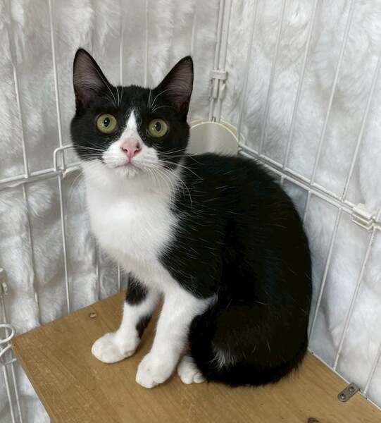 11/30譲渡会出場にゃんず 黒白ハチワレ子猫♀@約5ヶ月(仮名)サテンちゃん