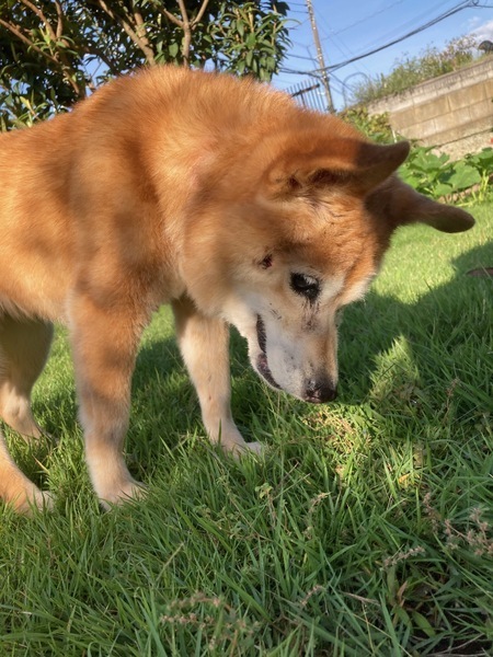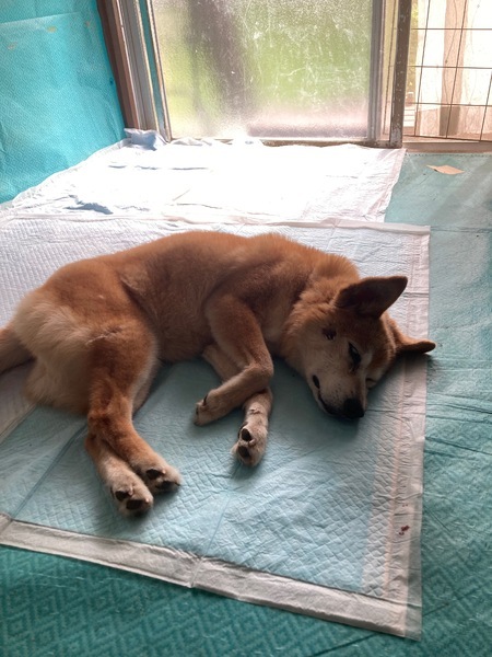 | 特徴(性格など) | 【愛称】へれん 【犬種】ミックス 【性別】メス(不妊手術済) 【年齢】推定14歳 【毛色】茶 【体重】8kg(適正10-12kg) 【状態】 混合ワクチン・狂犬病予防接種済、マイクロチップ装着済、ノミダニ駆除済、駆虫済、フィラリア(-)、視覚・聴覚ほとんどなし、斜頸(前庭疾患後遺症)、皮膚疾患(経過観察中) 【人馴】 意思疎通にコツがいるが人は嫌いではない 【預かり場所】 千葉県四街道市 【日記】 インスタグラム coco_nuts_home311 https://www.instagram.com/coco_nuts_home311/ 【経緯】 茨城県動物指導センターより引き取り 【性格・その他】 気丈でマイペースなお婆ちゃんです。 現在は、視力と聴力がほとんどなく、前庭疾患後遺症と思われる頭部斜頸と運動失調の影響でバランス悪く、歩行がとても不安定です。 預かり後しばらくの間は、それまでの生活でスキンシップの経験の乏しさから、体にそっと触れても跳び上がって驚き、反射的に噛もうとするため意思疎通が困難な状態でした。そのような反応が視覚、聴覚、触覚、運動失調の四重苦で外界からの遮断された状態で生活環境が変わったことによる一時的な混乱なのか、既にシニア犬特有の認知症状が出ているのか判別が困難な状態でしたが、約2ヶ月試行錯誤した生活の様子から、身体と運動機能の低下はあるものの、いわゆる認知機能の低下はほとんどないと思われます。 全身明らかな筋力低下はありませんが、頭が傾き下がった状態で歩くため平衡感覚が悪く、その姿勢で前や横に倒れ転がり(人に例えると目を閉じた状態で前転や側転をしてから歩く状態に近いと思われます)方向や位置感覚がわからなくなるため、庭や室内のサークル、ベッドなどへはリードの誘導や抱っこをして移動しています。今のところ歩いていて転がっても身のこなしが柔らかく怪我をすることはなく、へれんのタイミングで適宜排泄できることを優先に考えて車椅子は使用していませんが、更に頭が下がり傾くようになると姿勢保持が難しくなり、将来的には車椅子が必要になると思います。 嗅覚と味覚はしっかり働いていますが、ご飯は食べムラがあります。 軟便と下痢を繰り返すたため、手作りと消化器サポートのフードを併用しています。 排泄は夜間サークルの中と、朝と夕方1〜2時間庭に出すとそのタイミングでもします。室内フリーの時は足裏の感覚でペットシーツはわかるようですが、そこまでの移動には誘導が必要なため、お留守番時にはほぼ失敗しています。 睡眠と排泄のリズムが大分整い、日中は人や犬と同じ部屋でその気配を感じながら過ごすようになってから穏やかな婆ちゃん犬に進化中です。 まだ体に触れられることに抵抗感があるため、抱っこやマナーウェアの着用、ブラッシング、足拭き、爪切り、歯磨きなどは十分にできない状態ですが、毎日スキンシップをしながら、へれん自身が渋々でも必要なケアであると理解し受け入れるような関わりを心がけています。 へれんは決して『看取り間近の単にベッドやご飯だけが必要なひ弱で可哀想な老犬』ではなく、人と触れ合う経験がなかった『気丈なシニア犬』の再スタートとして残された機能を最大限に引き出し穏やかで満足感ある時間を過ごせるよう、そばで見守り必要な時に手を差し出すような関わりをしてくださる老犬介護の経験があるご家族とのご縁を希望しています。 更に長時間や夜間の介護が必要となった場合も、責任と愛情を持って最期の時までしっかりとお世話できるかどうかについてはご自身のライフスタイルと合わせてご一考ください。 今後加齢に伴い不自由さが増してもできる限り自力で安全に移動できる飼育環境を整え、信頼できる獣医師と相談の上必要なワクチン接種などの健康管理と、身体機能に応じて必要な脱走・逸走防止対策に納得しお約束いただける、預かり宅から概ね1時間圏内にお住まいのご家庭で、終生家族の一員として大切にしていただける方からのお問い合わせを心よりお待ちしています。 【高齢者:可】 【単身者:不可】 外国語対応:不可 【お申し込み】↓よくお読み下さい↓ 特徴、譲渡条件や譲渡までの流れをよくお読み頂き、 直接 いぬ助けのホームページよりアンケートを送って下さい。 ↓ → https://www.inudasuke.com → 里親希望アンケート (こちらのサイトのアンケートでは お時間を頂く場合がございます。 直接いぬ助けのHPよりお願いします。) 【いぬ助けSNS】 いぬ助けHP → https://www.inudasuke.com フェイスブック→ https://www.facebook.com/inudasuke/ インスタグラム→ https://www.instagram.com/inudasuke/ |